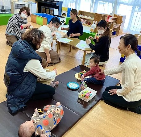 お子さまはおもちゃでスタッフと遊びながら,お母様たちはまぜまぜグルグル🌀